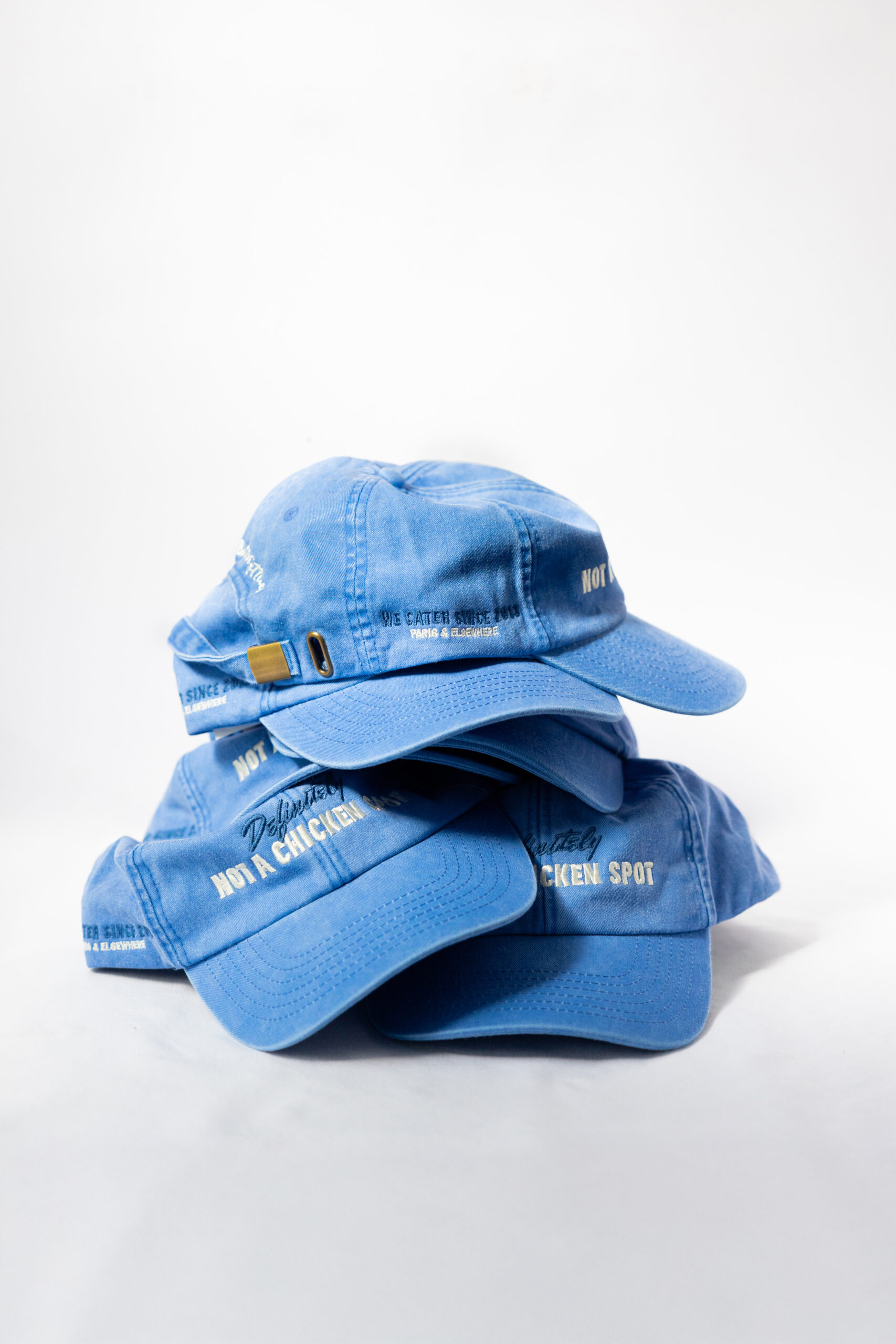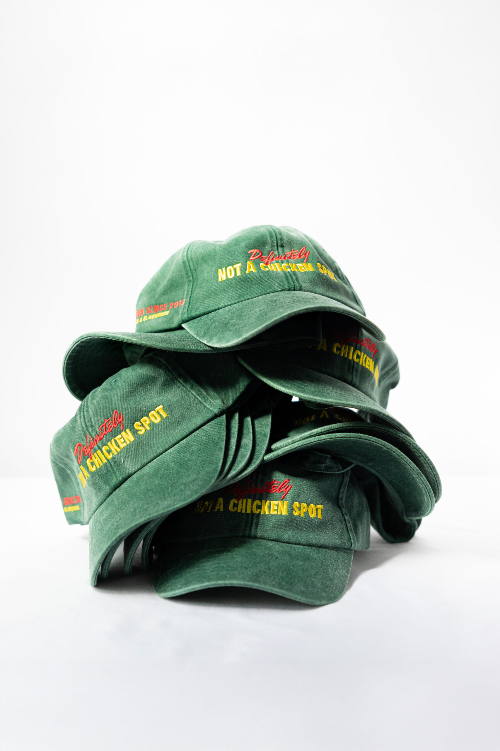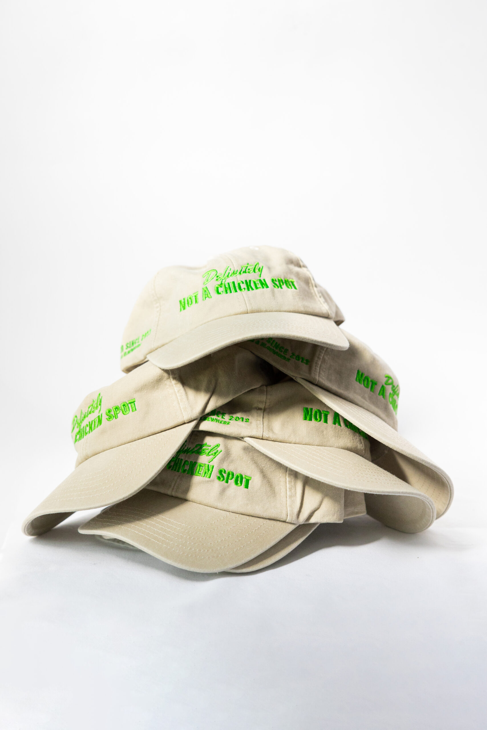 Our “DEFINITELY NOT A CHICKEN SPOT” caps.